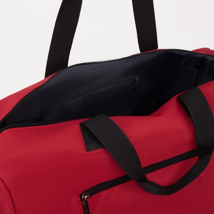 Сумка спортивная женская на молнии, отдел для обуви, наружный карман, большой размер, цвет красный