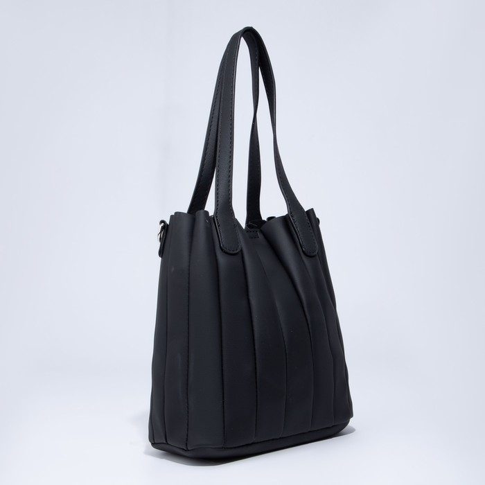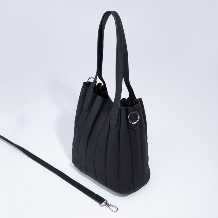 Сумка-тоут на магните, длинный ремень, цвет чёрный