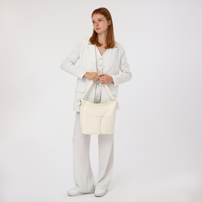 Сумка-тоут на молнии, 2 наружных кармана, цвет белый