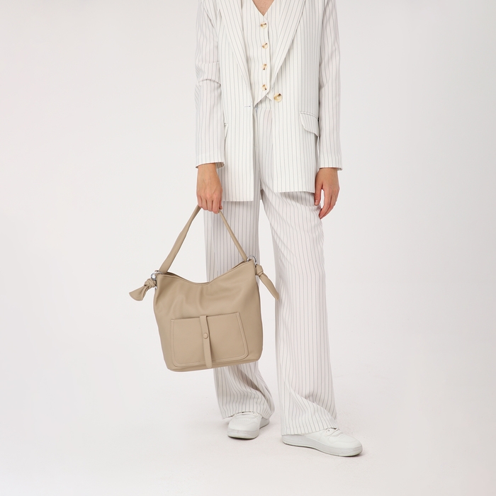 Сумка-тоут на молнии, 2 наружных кармана, цвет бежевый