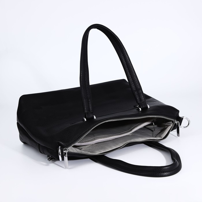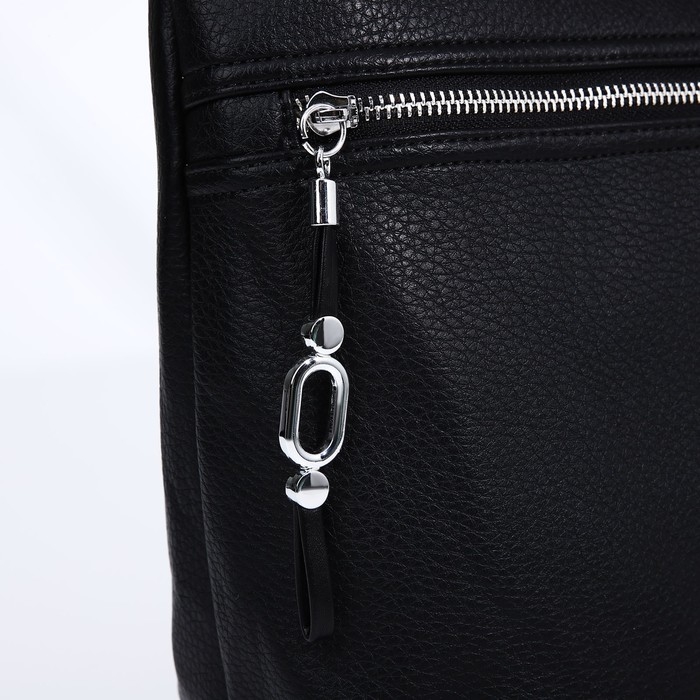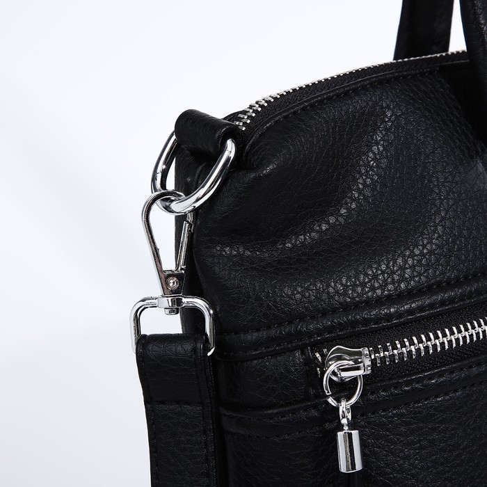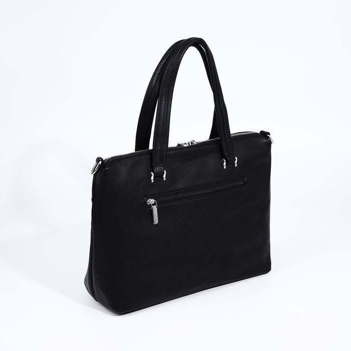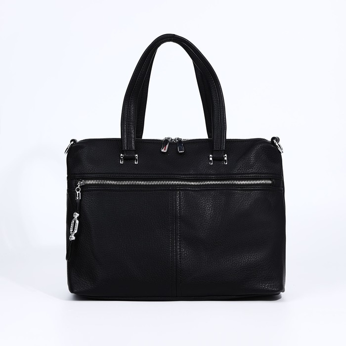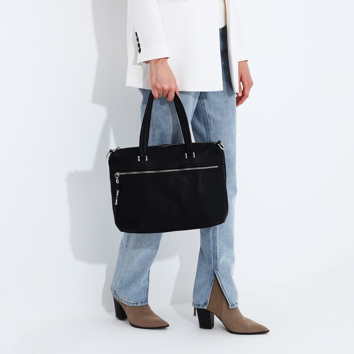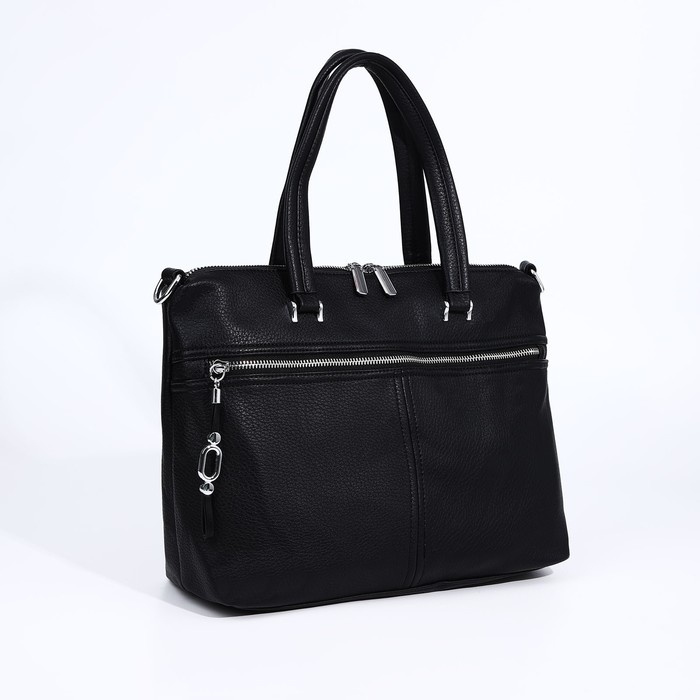 Сумка-тоут на молнии, 2 наружных кармана, цвет чёрный