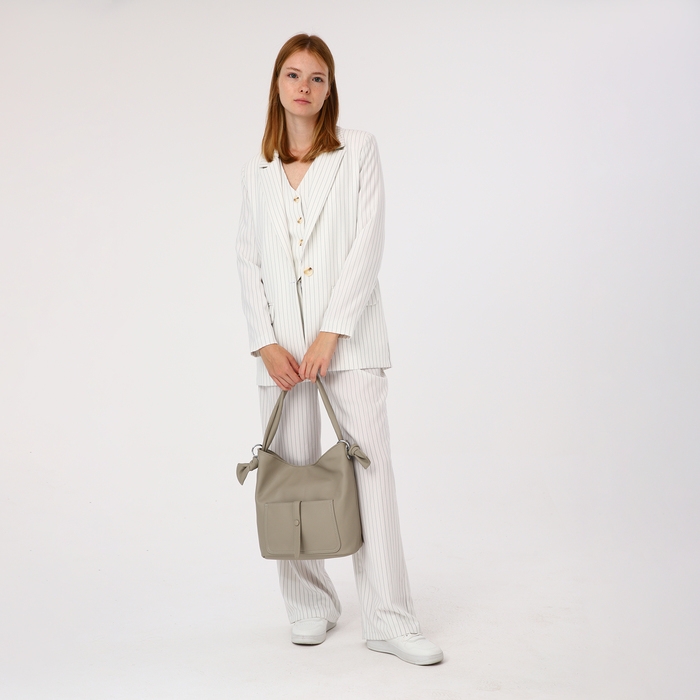 Сумка-тоут на молнии, 2 наружных кармана, цвет серый