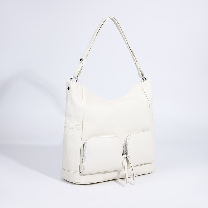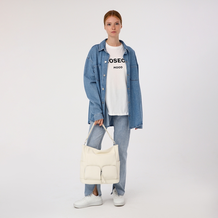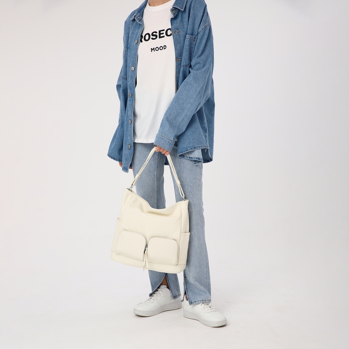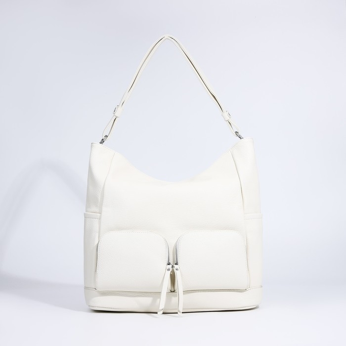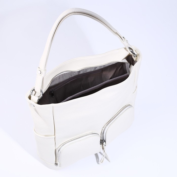 Сумка-тоут на молнии, 3 наружных кармана, цвет белый
