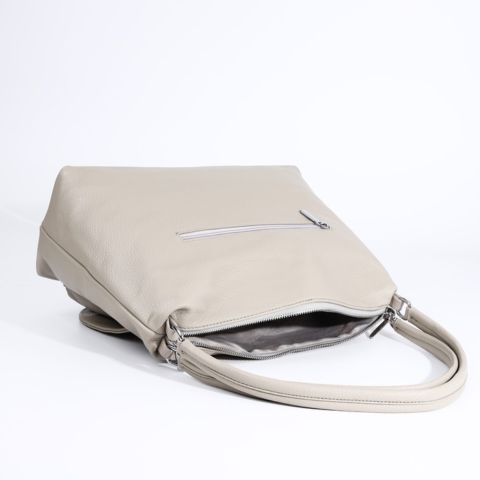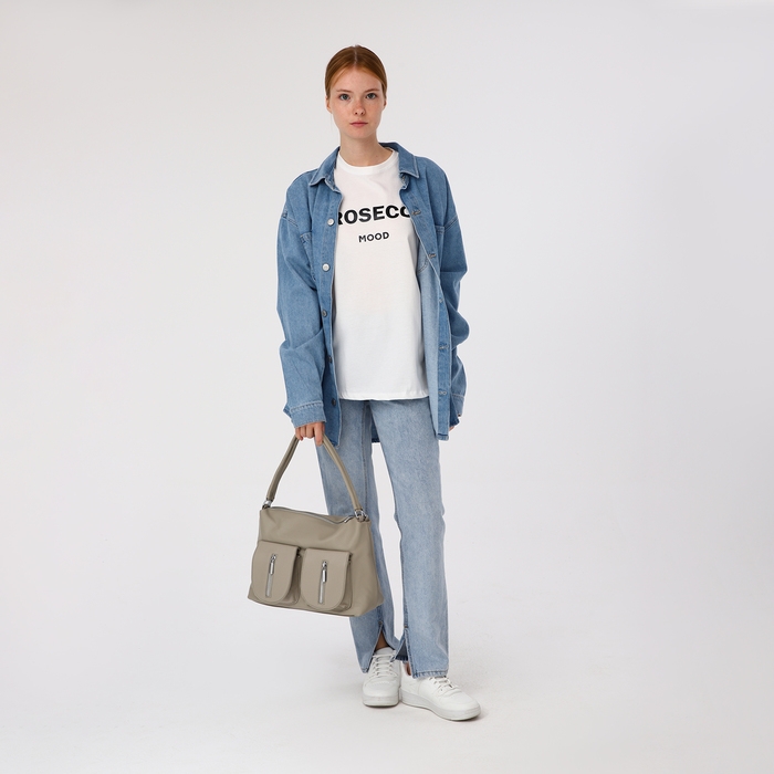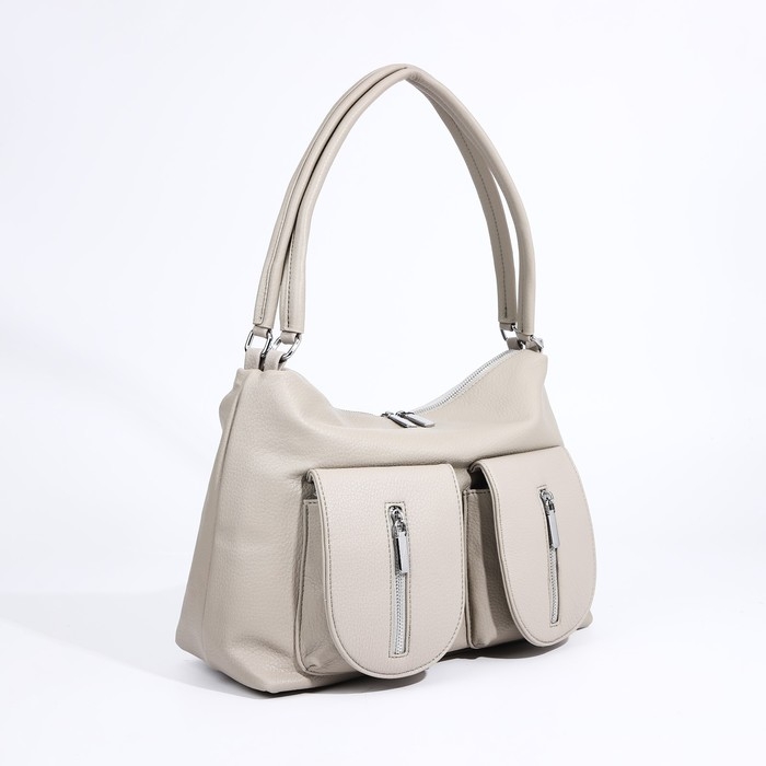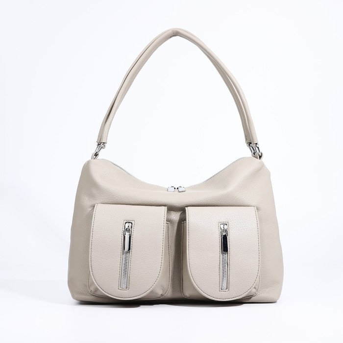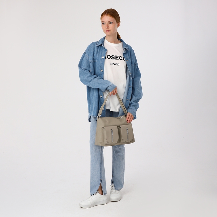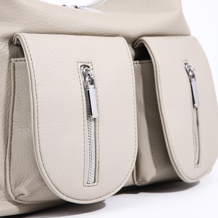 Сумка-тоут на молнии, 3 наружных кармана, цвет светло-серый