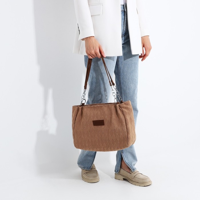 Сумка-тоут на молнии, цвет светло-коричневый