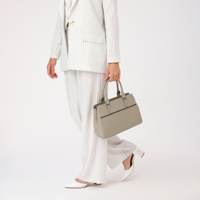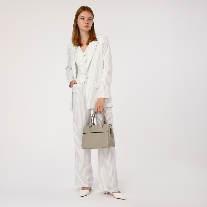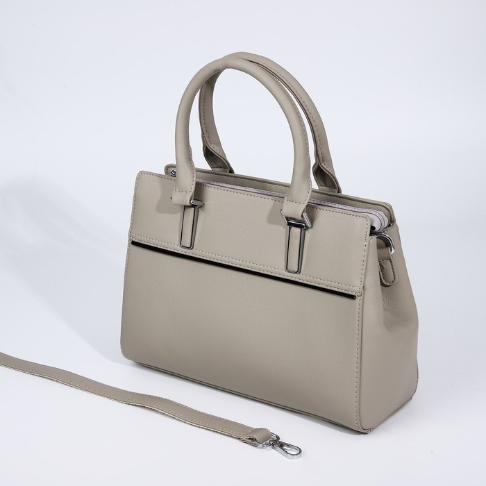 Сумка-тоут на молнии, наружный карман, цвет светло-серый