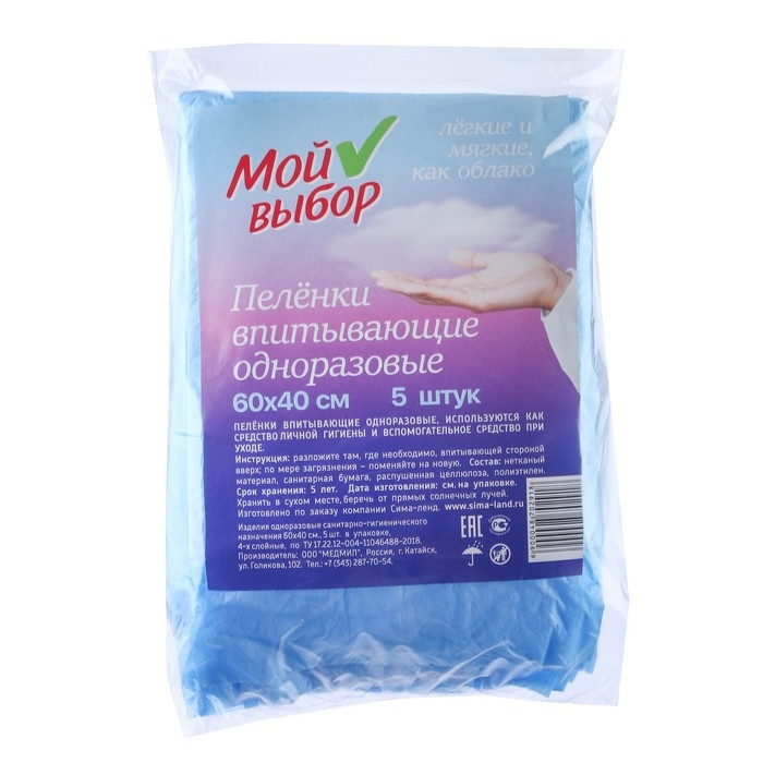 Пелёнки впитывающие одноразовые "Мой выбор", 60 х 40 см, 5 шт