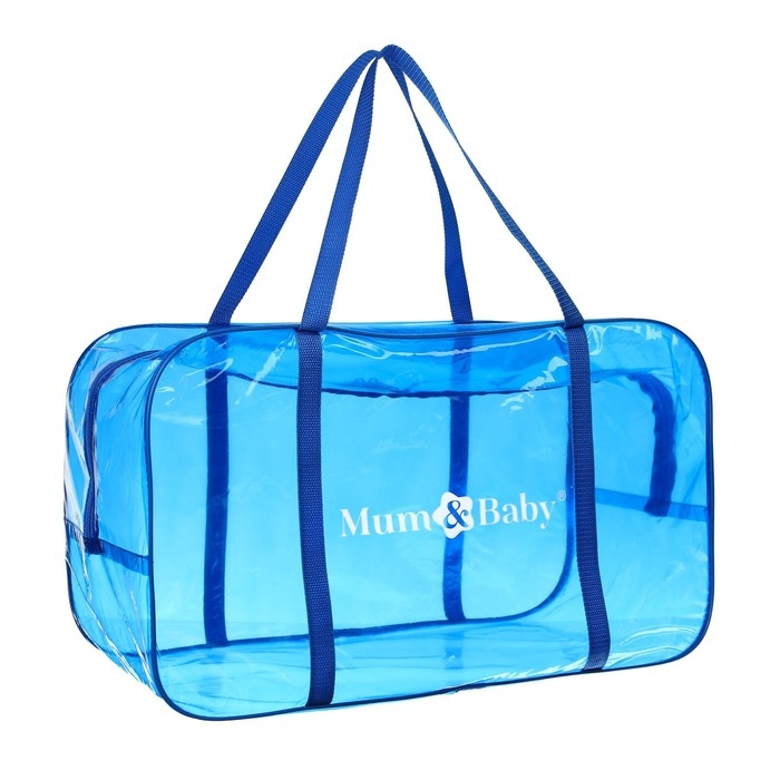 Сумка в роддом, размер 30х50х25 см, цветной ПВХ, цвет прозрачный/голубой, Mum&Baby
