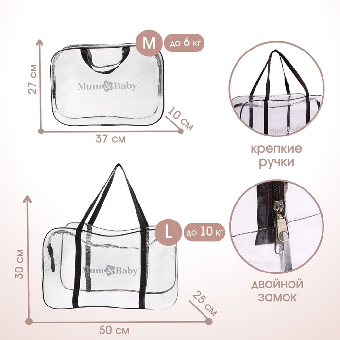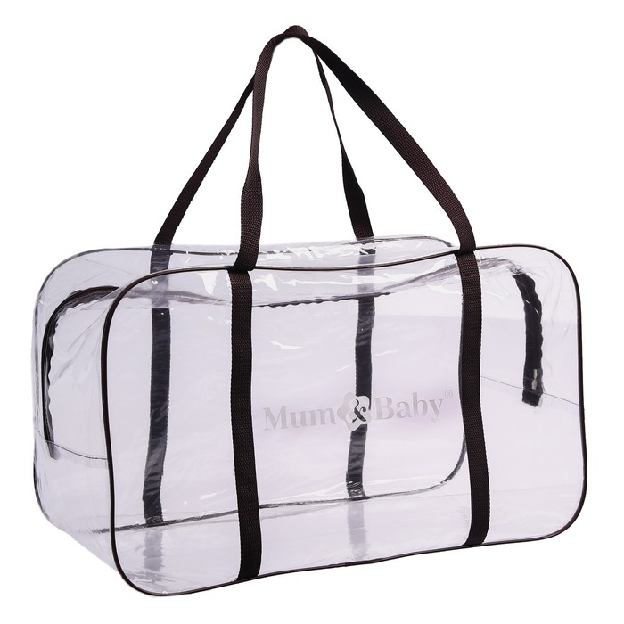 Сумка в роддом, размер 30х50х25 см, с косметичкой ПВХ100, цвет прозрачный/коричневый, Mum&Baby