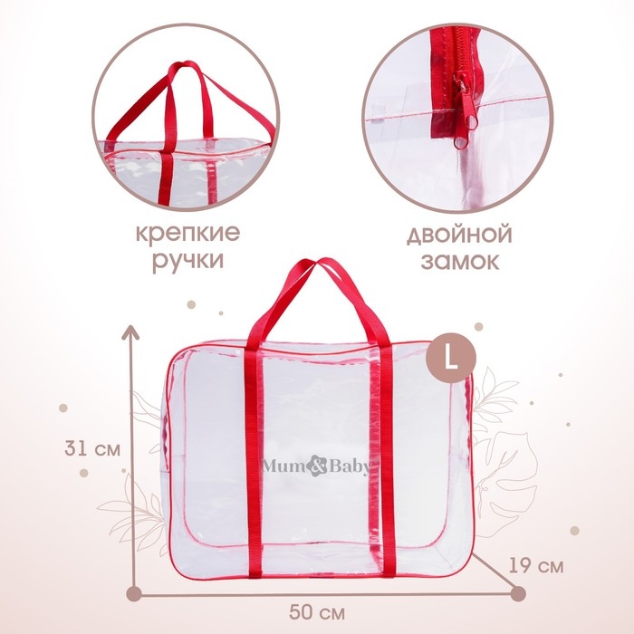 Сумка в роддом, размер 40х50х25 см, карман сбоку, цвет прозрачный/красный, Mum&Baby
