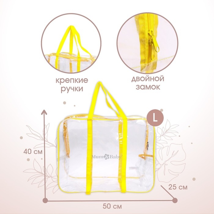 Сумка в роддом, размер 40х50х25 см, карман сбоку, цвет прозрачный/желтый, Mum&Baby