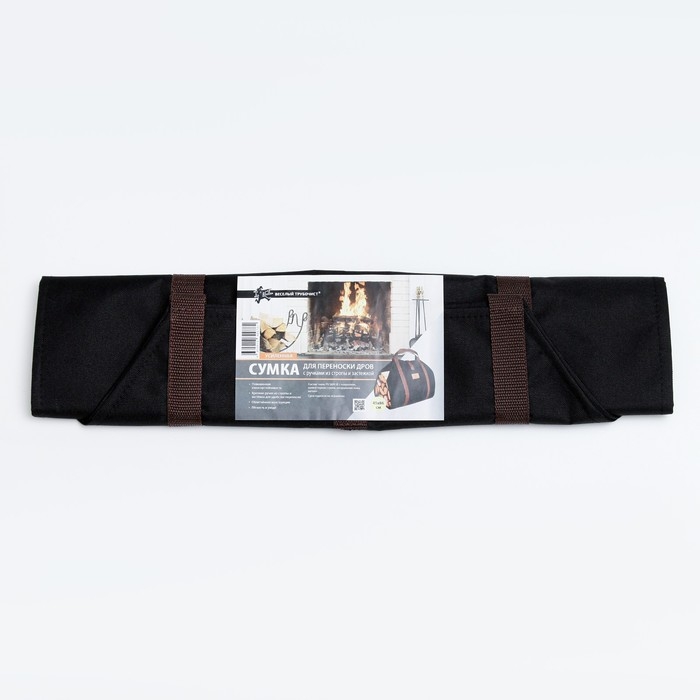 Сумка "Весёлый трубочист.УСИЛЕННАЯ" для переноски дров с ручками из стропы, 45х86 см, черная