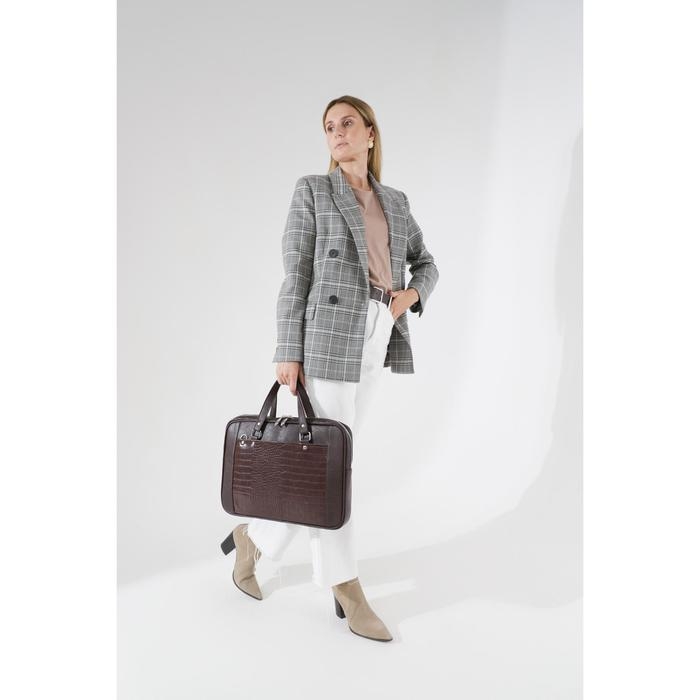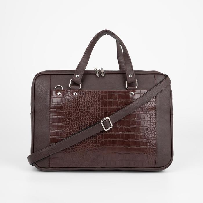 Сумка женская El Masta на молнии, 2 наружных кармана, длинный ремень, цвет тёмно-коричневый