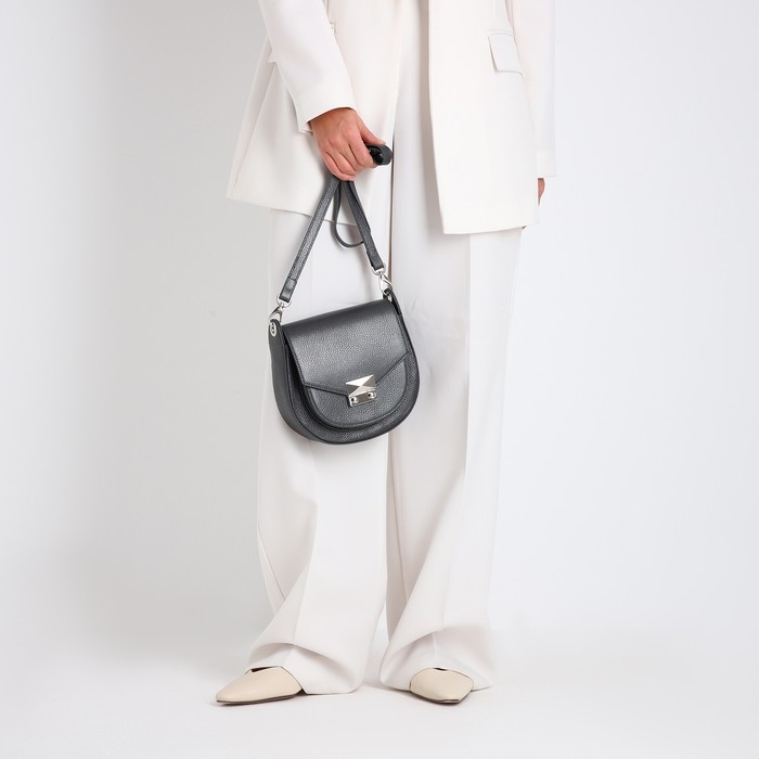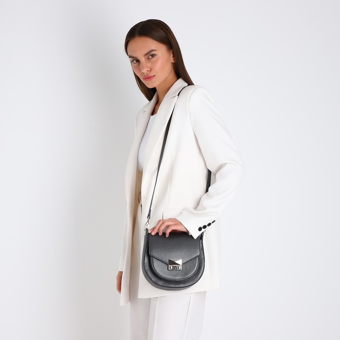 Сумка женская Медведково на застёжке, длинный ремень, цвет серый
