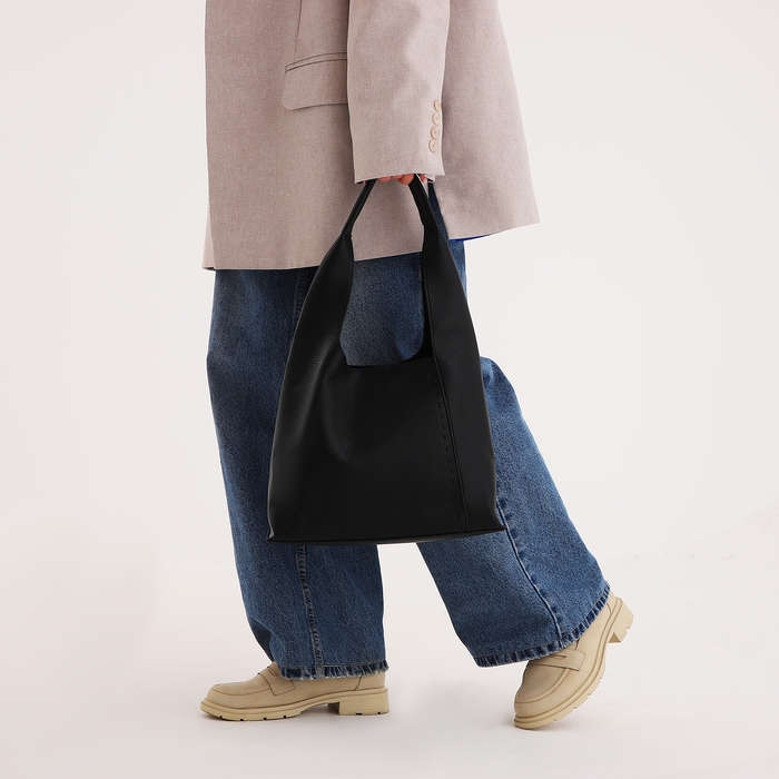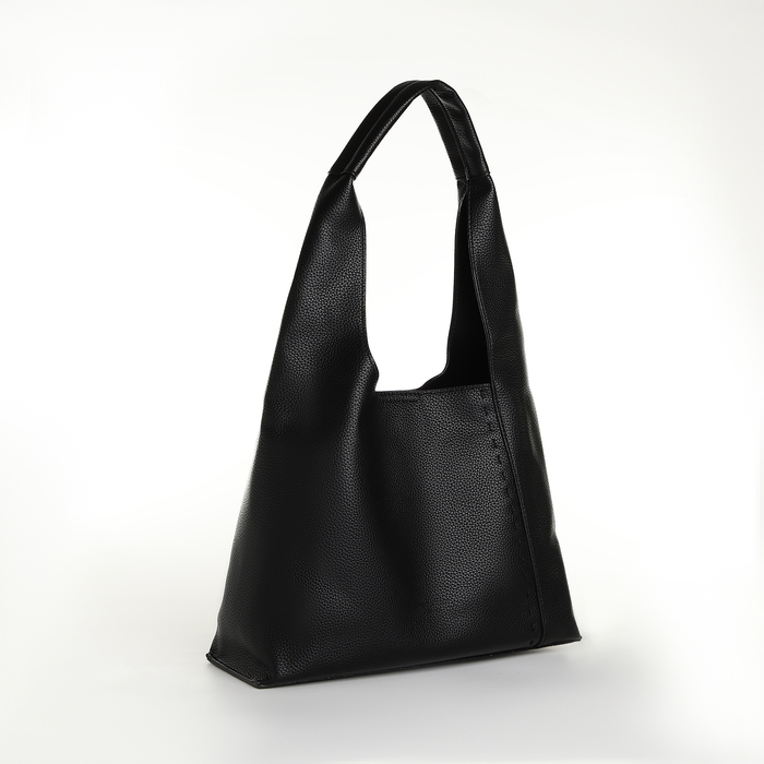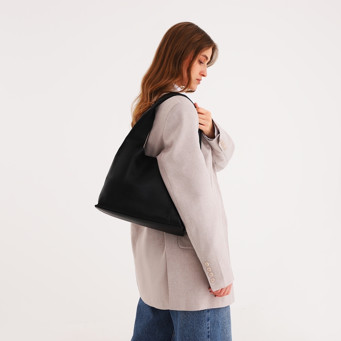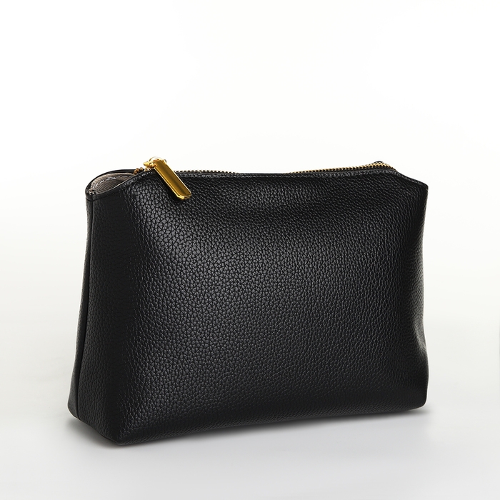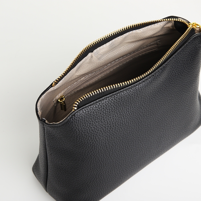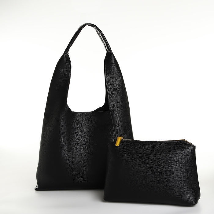 Сумка женская мешок 2 в 1, на кнопке, косметичка, цвет чёрный