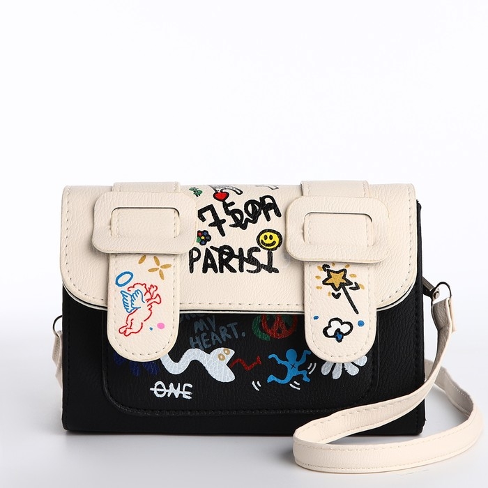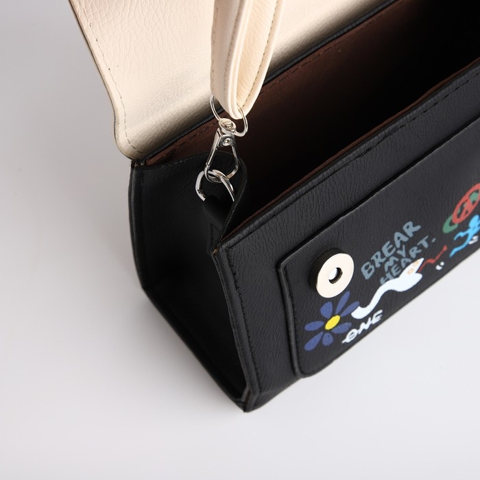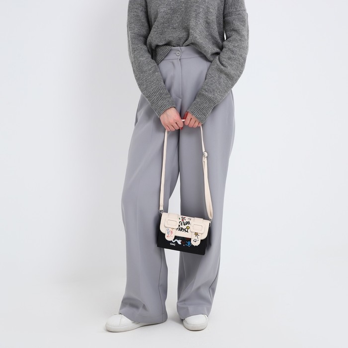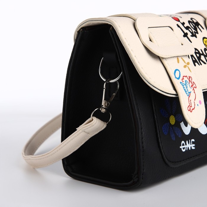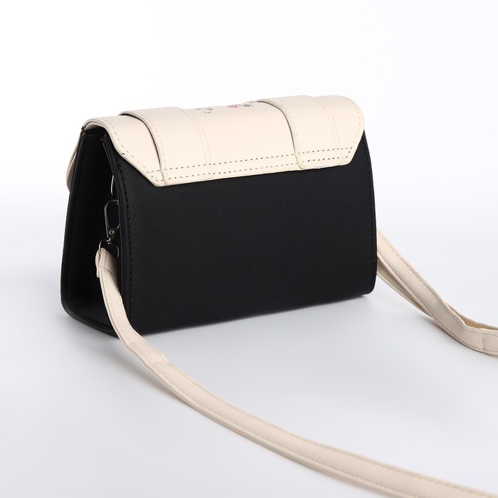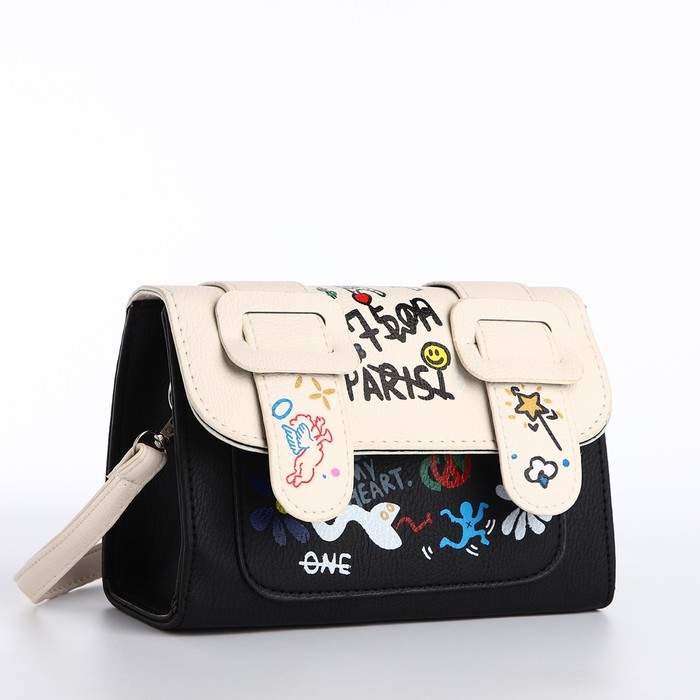 Сумка женская-мессенджер, цвет черный с белым 18,5*13*8 см