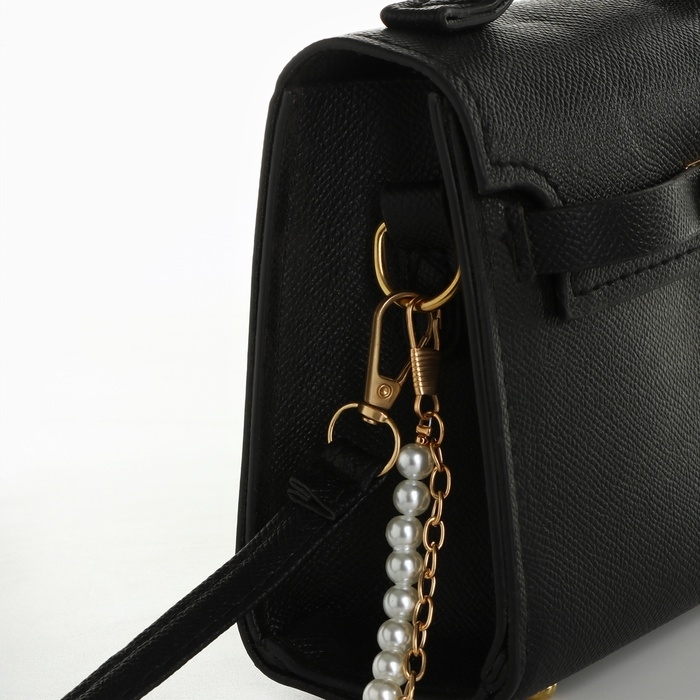 Сумка женская-мессенджер с цепочкой из жемчуга, цвет черный 19*13*7 см