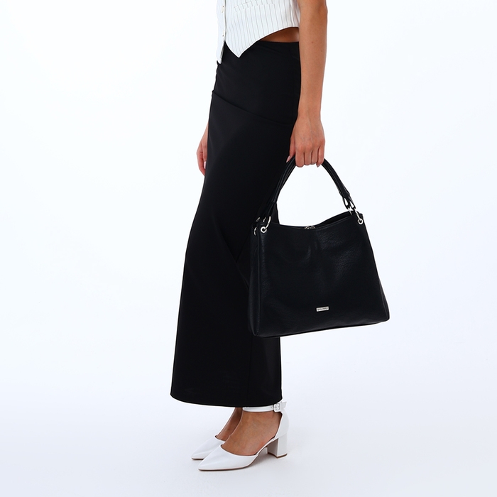 Чёрный цвет добавляет универсальности, позволяя сочетать сумку практически с любым нарядом.
