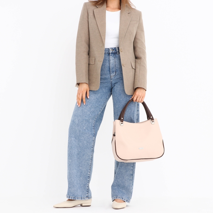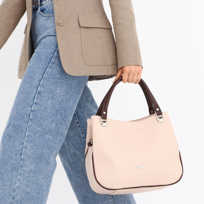 Сумка женская на молнии, средний размер, цвет бежевый