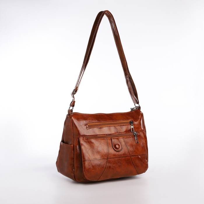Сумка женская на одно плечо, на молнии, цвет коричневый