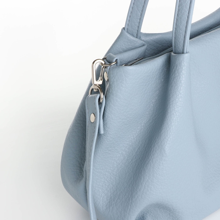 - Дизайн: элегантная форма и нежный голубой цвет делают сумку универсальным аксессуаром, который дополняет любой стиль.