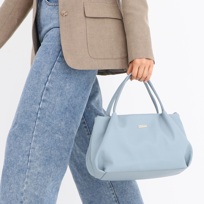 Эта изысканная женская сумка среднего размера в нежном голубом цвете от бренда «Саломея» станет идеальным дополнением вашего образа.