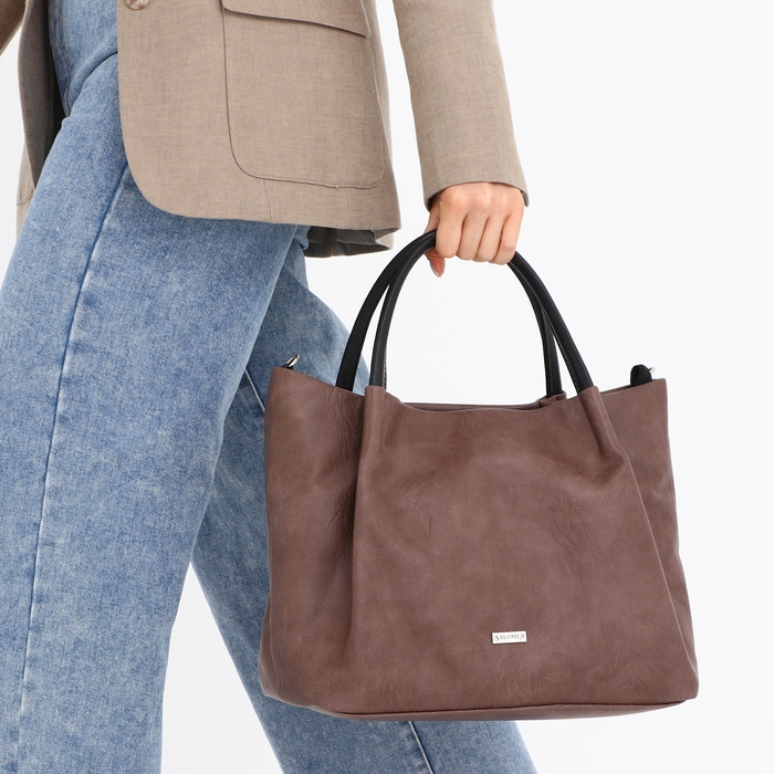 Коричневая женская сумка среднего размера от бренда «Саломея» станет идеальным дополнением к повседневному и деловому образу.