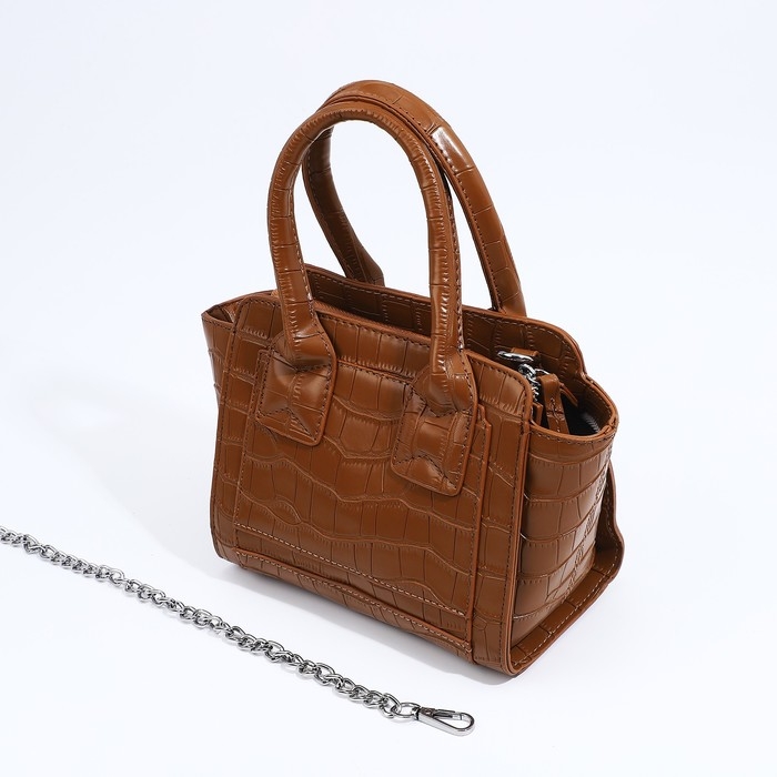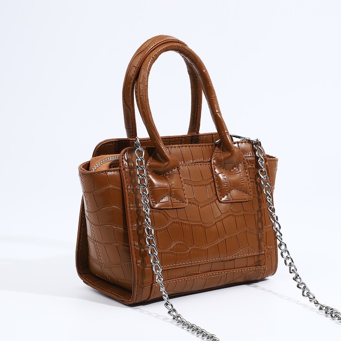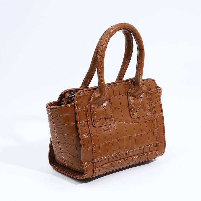 Сумка женская тоут на молнии, цвет коричневый