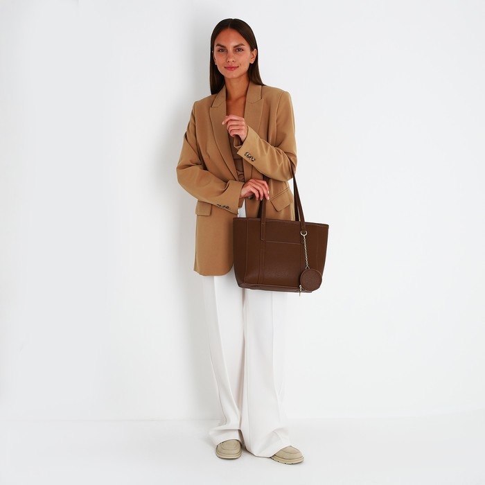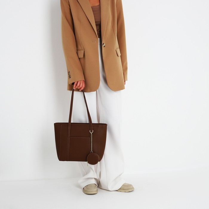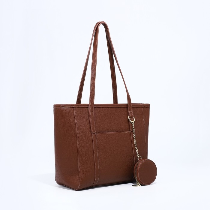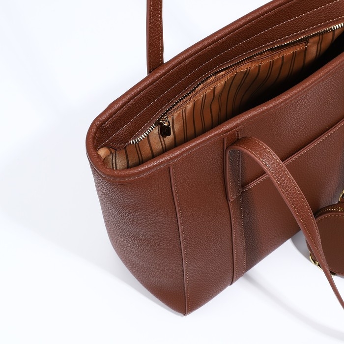 Сумка женская тоут на молнии, цвет коричневый