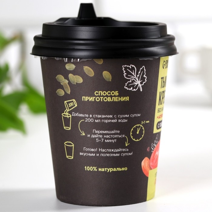 Способ приготовления: высыпать половину содержимого пакета (50 г) в чашку, добавить 1 стакан (200 мл) горячей воды (45-80° С), перемешать и дать настояться 5-7 минут.