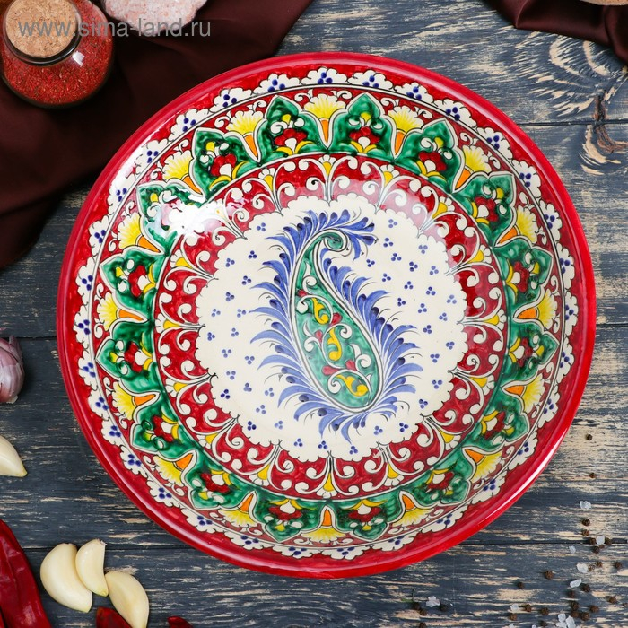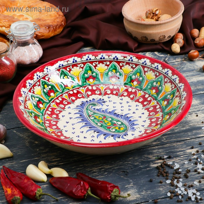 Супница Риштанская Керамика "Узоры", 26 см, красная
