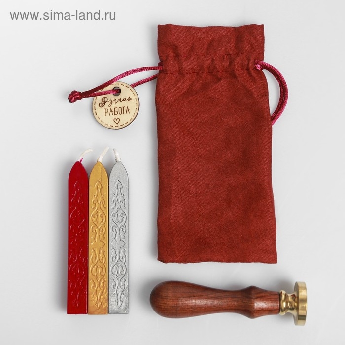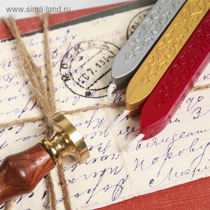 В набор входит сургуч в свечках, деревянная ручка, штамп
