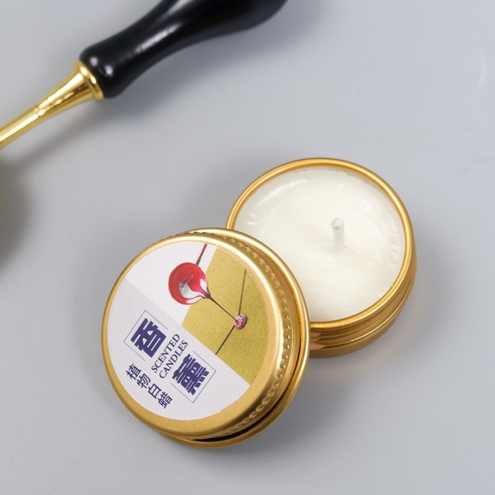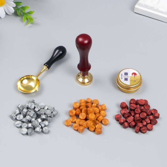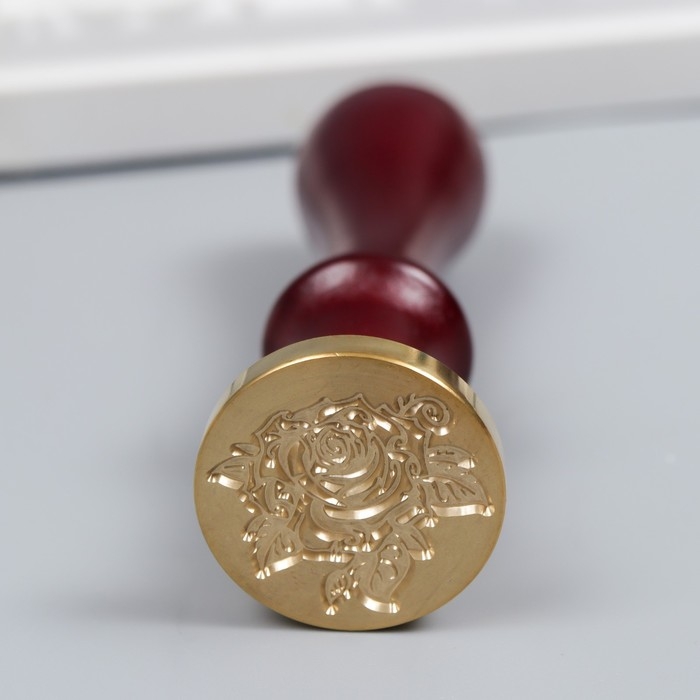 Сургучный набор "Крупная роза" печать, ручка, ложка, воск - 3 цвета, свеча 3,5х11х23 см