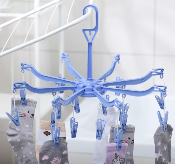 Сушилка для белья подвесная Доляна, 41x41 см, 16 прищепок, цвет синий