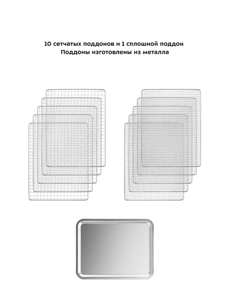 В комплекте к сушилке идут 10 металлических поддонов.