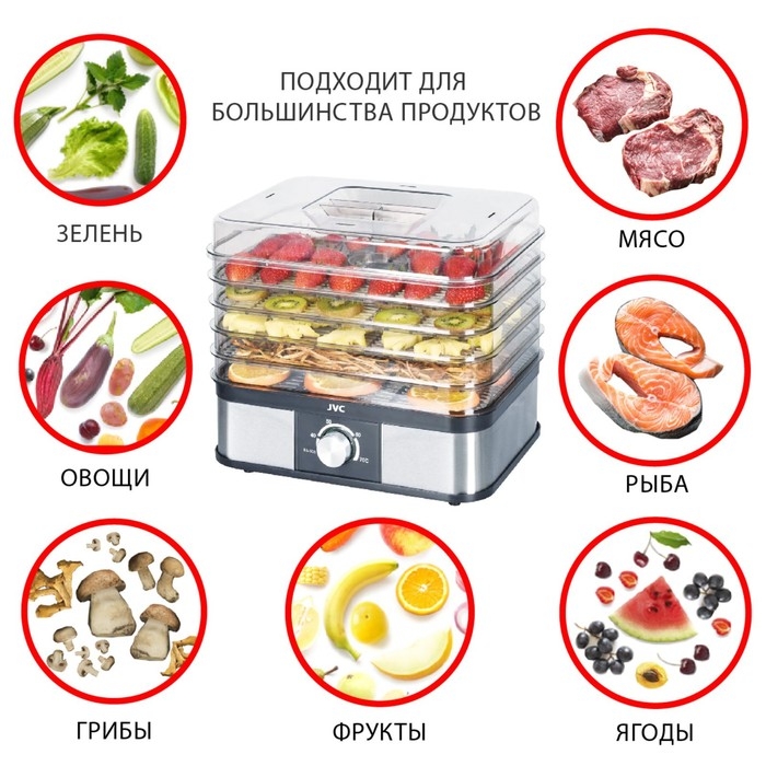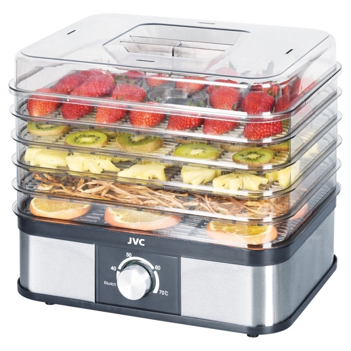 Сушилка для овощей и фруктов jvc JK-FD751, 245 Вт, 6 уровней, серебристо-чёрная