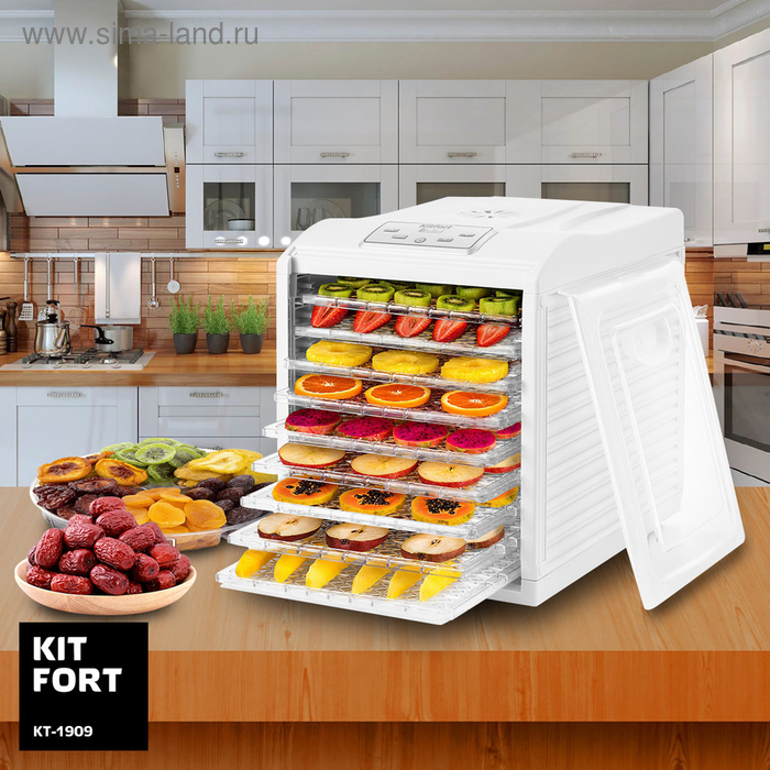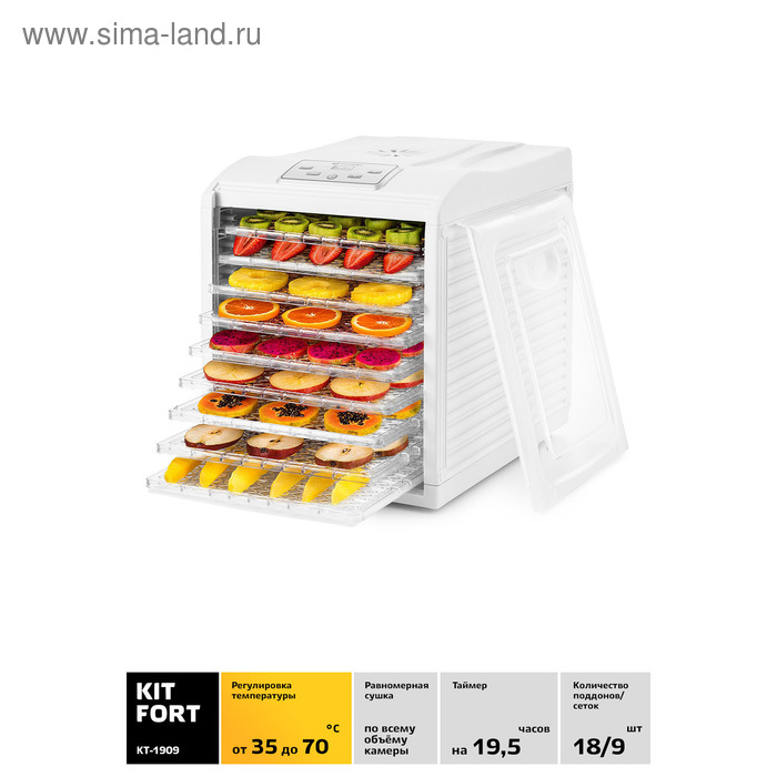 Сушилка для овощей и фруктов Kitfort KT-1909, 700 Вт, 9 ярусов, белая
