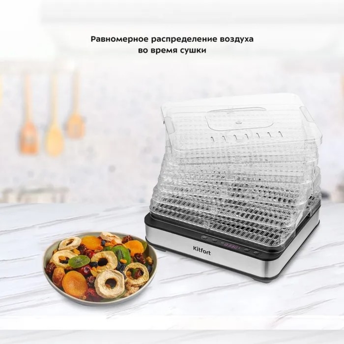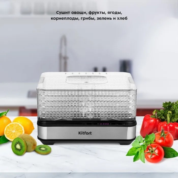 Сушилка для овощей и фруктов Kitfort КТ-1933, 420 Вт, 5 ярусов, 310х240 мм, серебристая