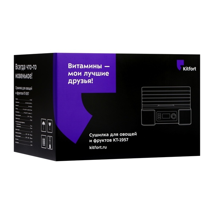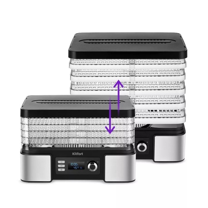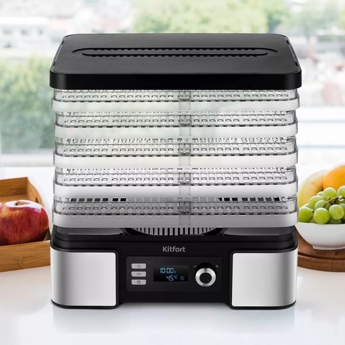 Сушилка для овощей и фруктов Kitfort КТ-1957, 450 Вт, 5 ярусов, таймер, серебристо-чёрная