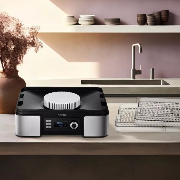 Сушилка для овощей и фруктов Kitfort КТ-1911, 650 Вт, 6 ярусов, 35-75 °С, серебристая