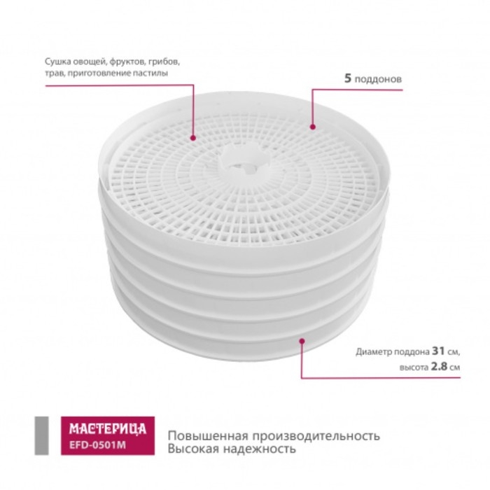 Сушилка для овощей и фруктов «Мастерица EFD-0501M», 125 Вт, белая