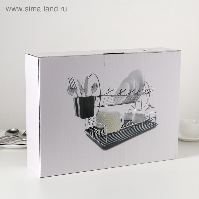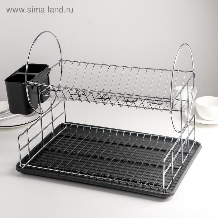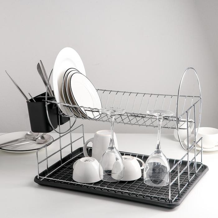 Сушилка для посуды 2-х ярусная, 39×30×32,5, цвет чёрный