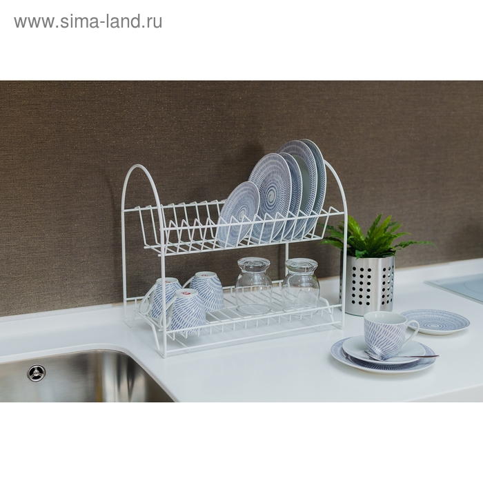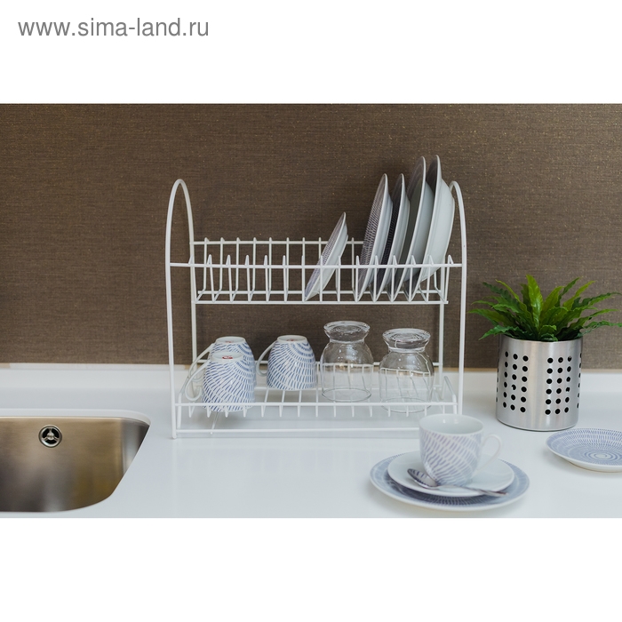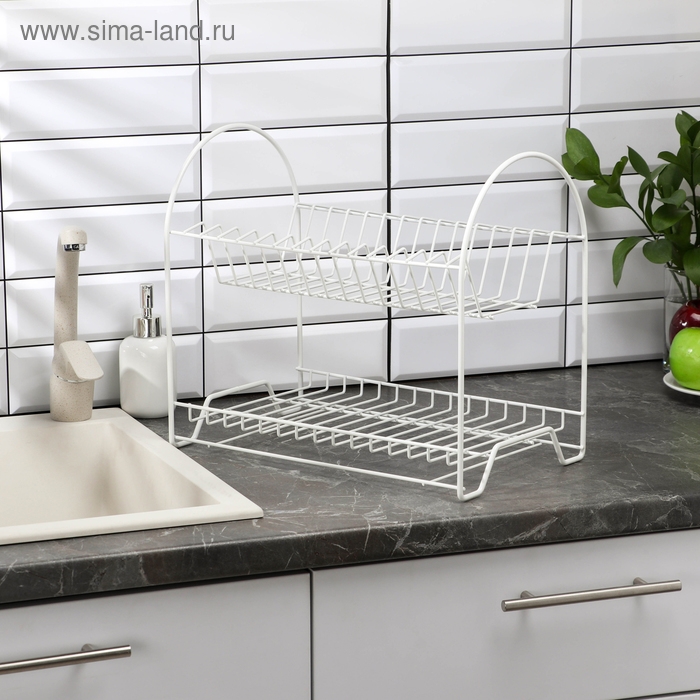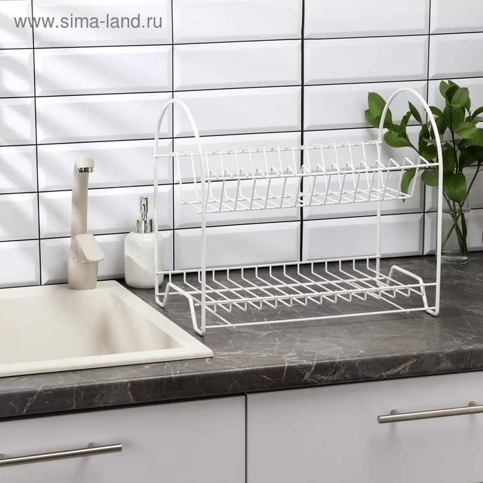 Сушилка для посуды с поддоном 2-х ярусная, 24×40×38 см, цвет белый