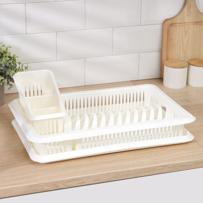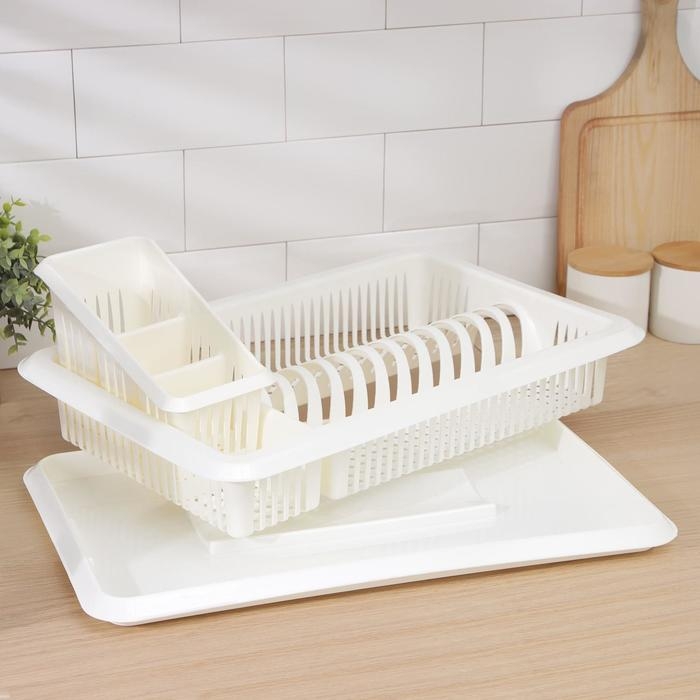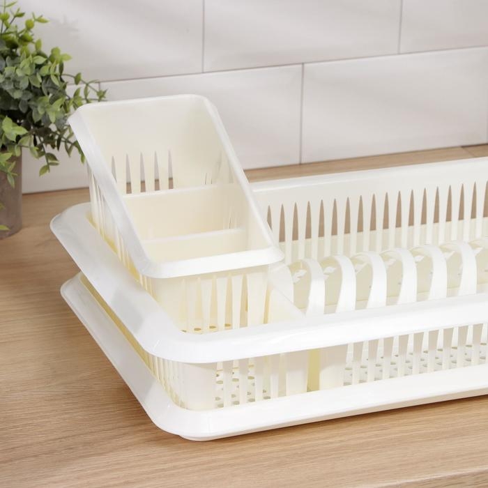 Сушилка для посуды с поддоном, с сушилкой для столовых приборов «Лилия», цвет ваниль