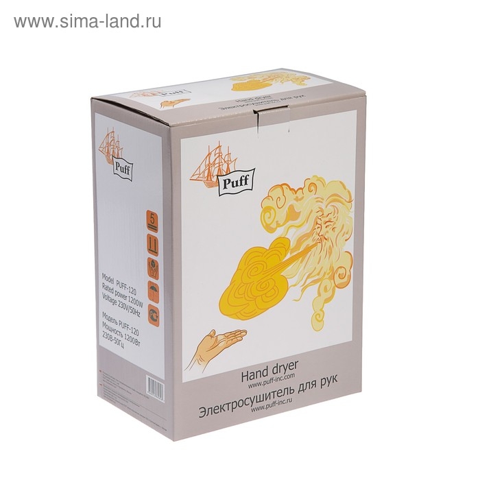 Сушилка для рук Puff-120, 1.2 кВт, 182х120х267 мм, белый