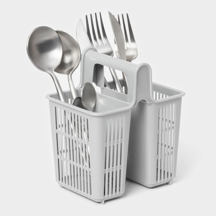 Сушилка для столовых приборов, 2 отделения, 10,1×13,8×16 см, цвет серый