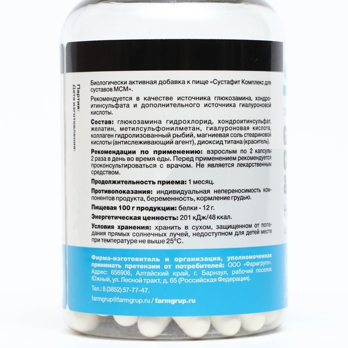 Сустафит Комплекс для суставов МСМ, 500мг, 120 шт по 0.6г