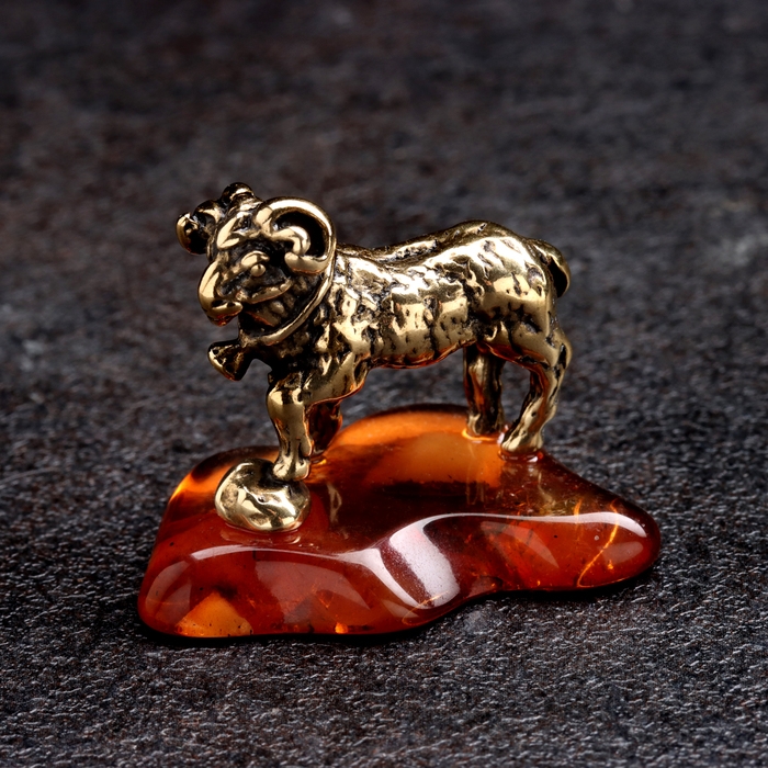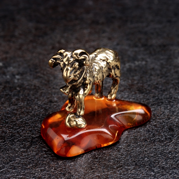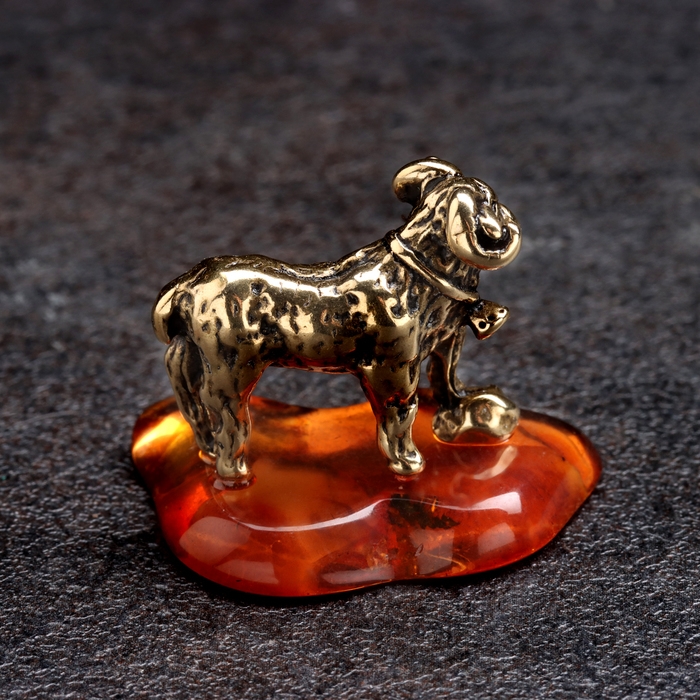 Сувенир "Баран с колокольчиком", латунь, янтарь, 3х2,5 см