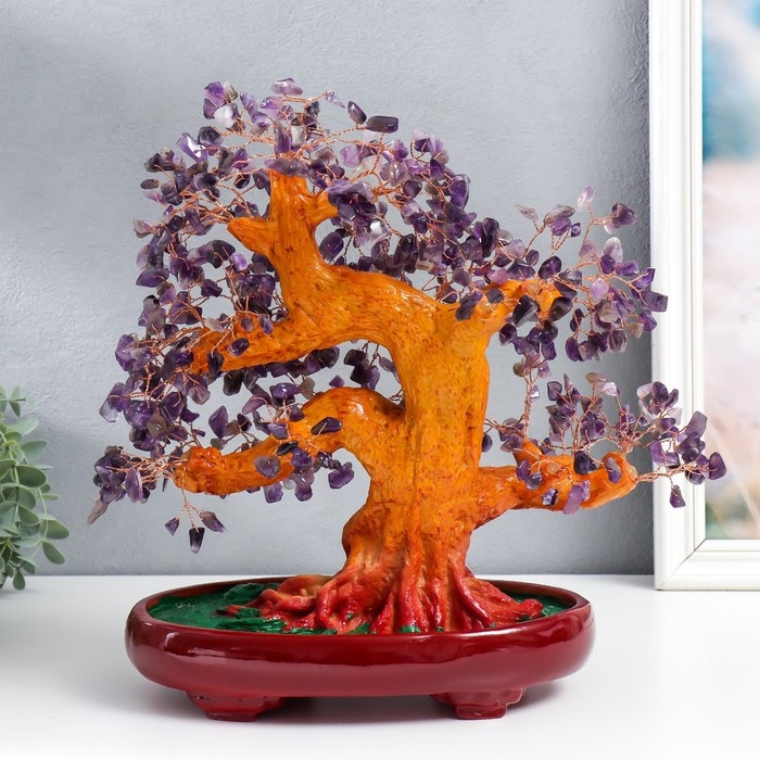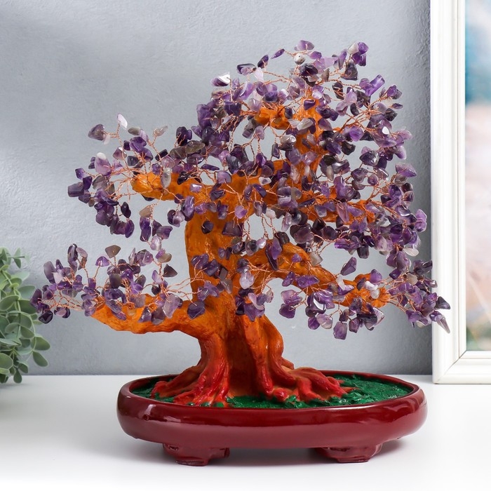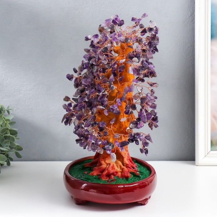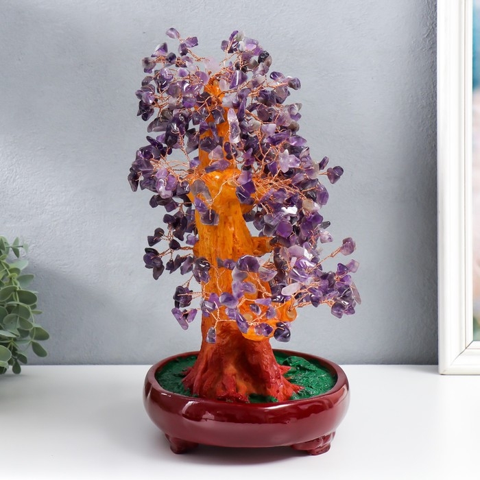Сувенир бонсай "Денежное дерево с фиолетовыми камушками" 450 камней 32х17х27 см