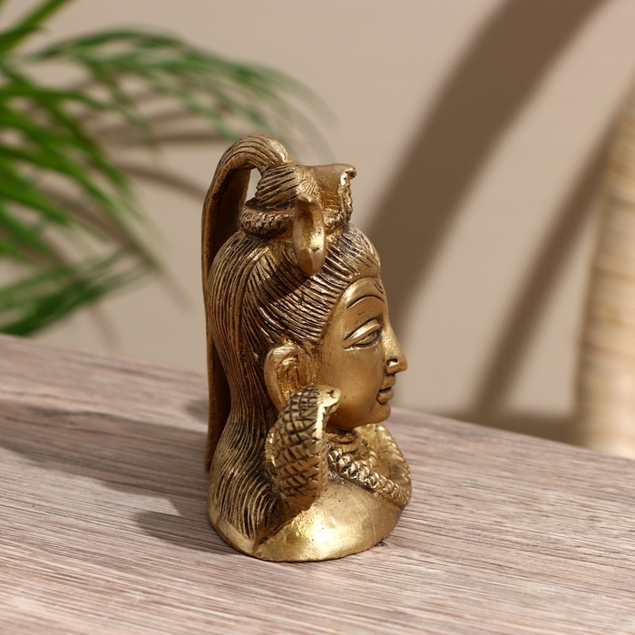 Сувенир "Бюст Шивы" 2 змеи, латунь 8 см